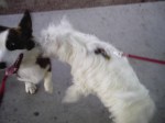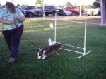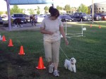 We went to Rally again tonight. It was the last drop in class, next week we start the beginning class. Mostly I went to the class so I would feel better about the signs. PJ was his social self. A teenage girl came to hang out and watch and wanted to take him home. Then one of our classmates called a friend to come down just to meet PJ. He is such a mushy boy. He did really well and I’m looking forward to our class next week. PJ’s favorite part of class aside from the food was playing with Marbles, they have a blast. Marbles is a young Westie who’s housemate is a veteran dog who only wants to play for a few minutes. PJ thinks class is fun. Food and Friends, another version of Yappy Hour.