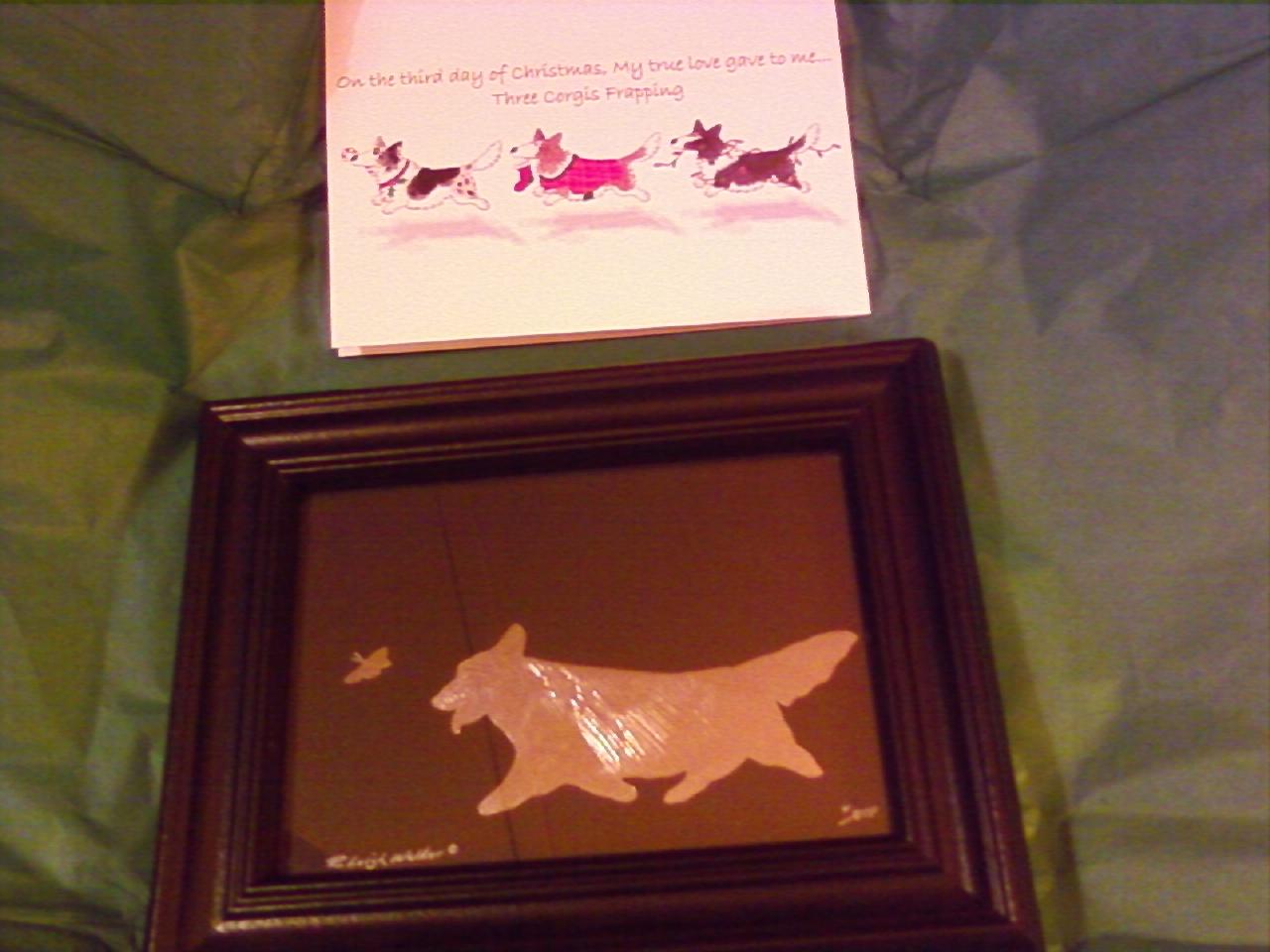 My Cardi Claus was Dawn Small of Smalltyme Cardis and blog. This was very cool, much prettier than in the photo taken from my cell phone.