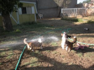 It is forecasted to be well over 100 degrees again today and like most days I try and get the garden done early. The dogs like to help, hence the expens around the plants.