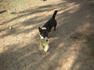 Of course the rest of the gang was scavenging for watermelon remains. If you need anymore proof that they love the watermelon, check out how clean this piece of rind is, the rind is the prize now and they will eat that too.