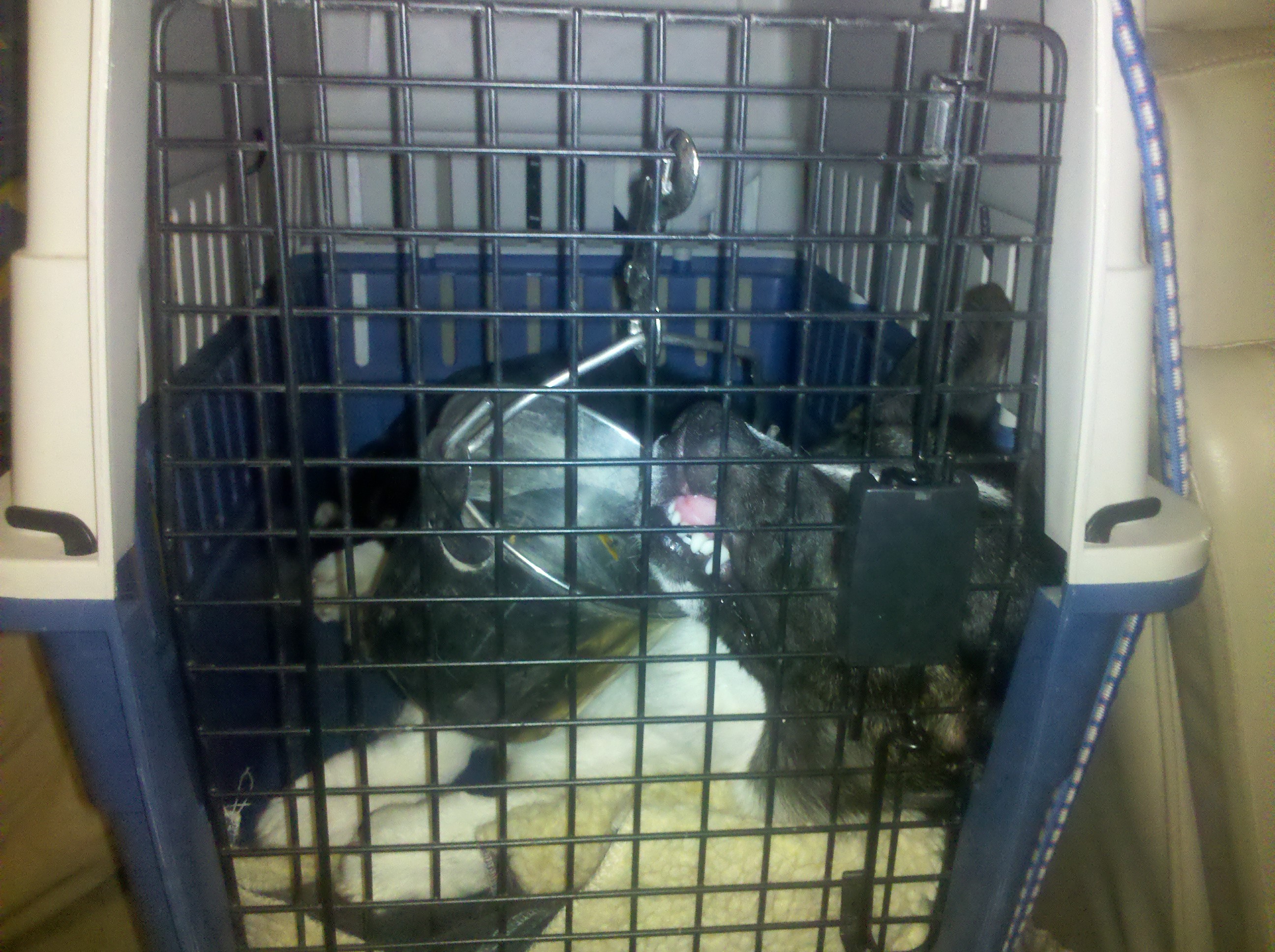 Is this a captured alien? Nope, it is Baby Banner! How can this be comfortable, this crate is plenty big enough