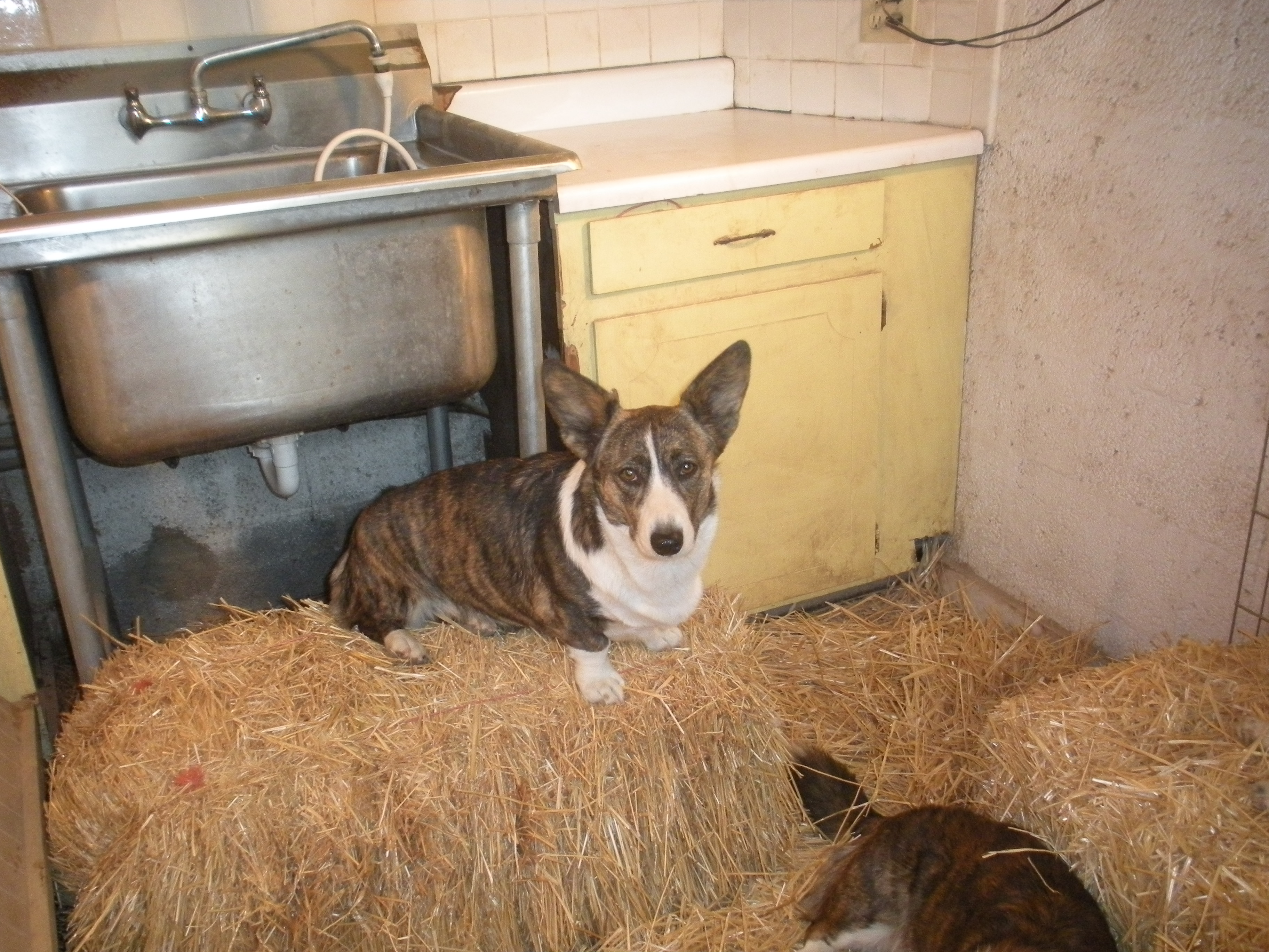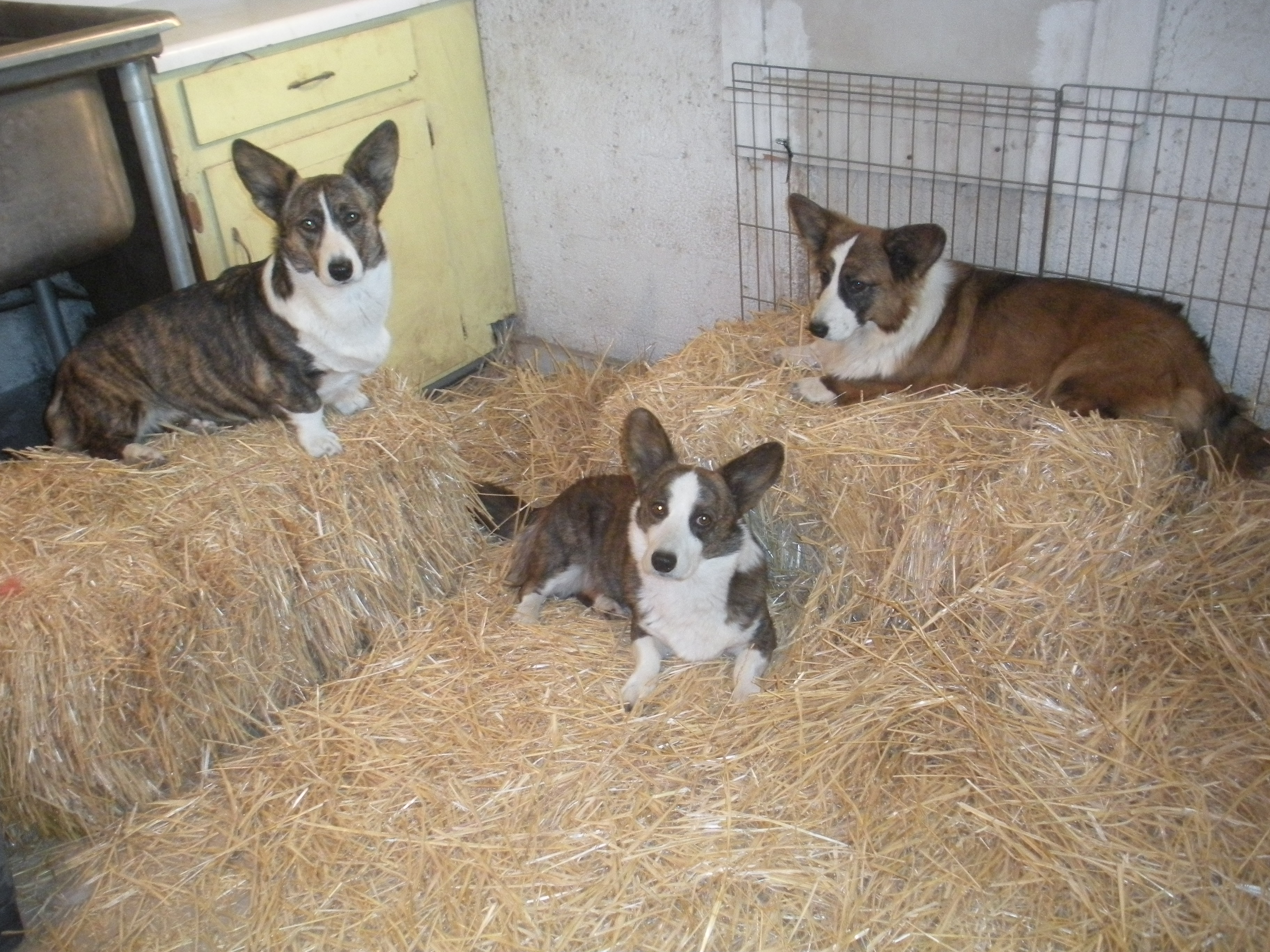 I got the staw bales yesterday and the big dogs wanted to roll out the welcome wagon and help get the room ready.