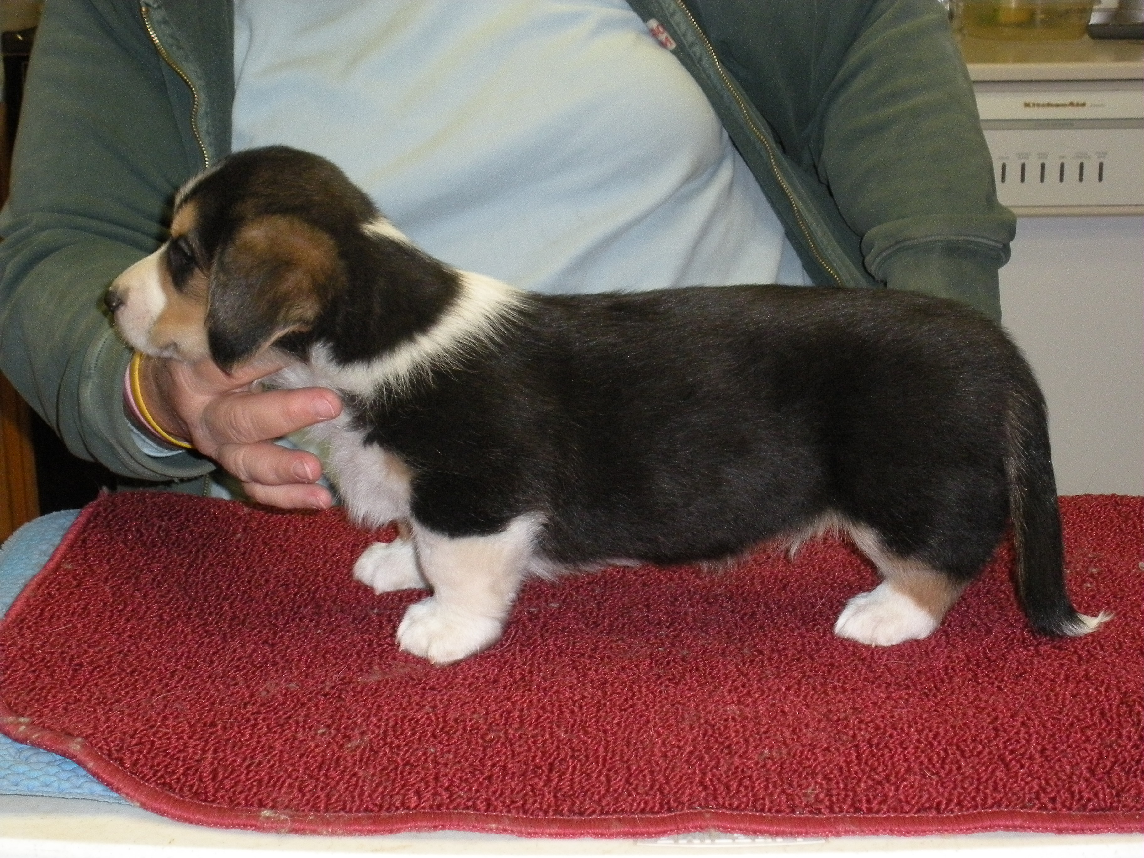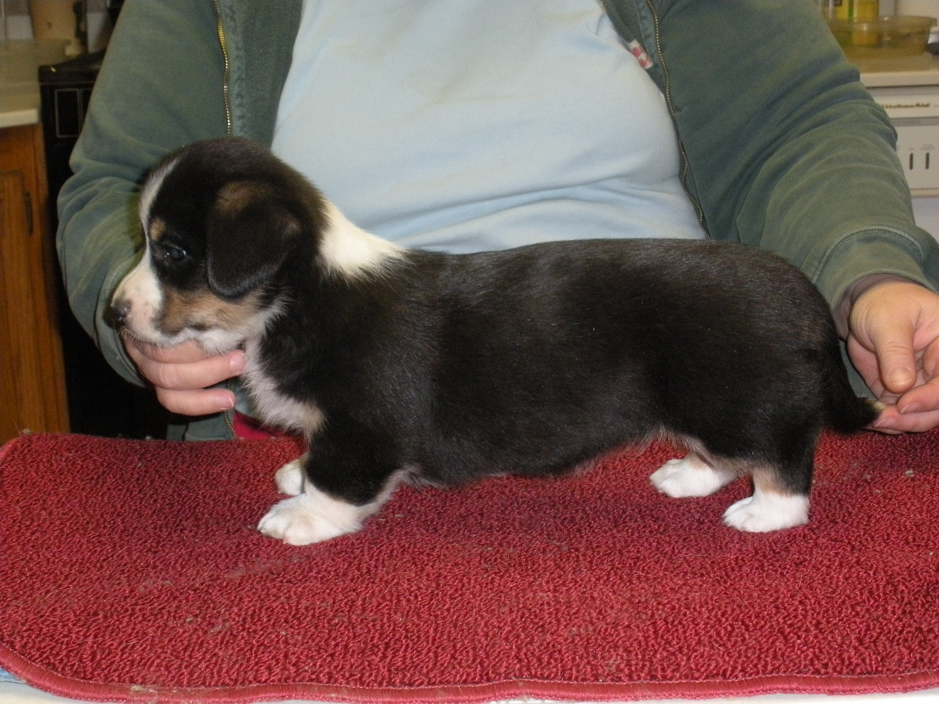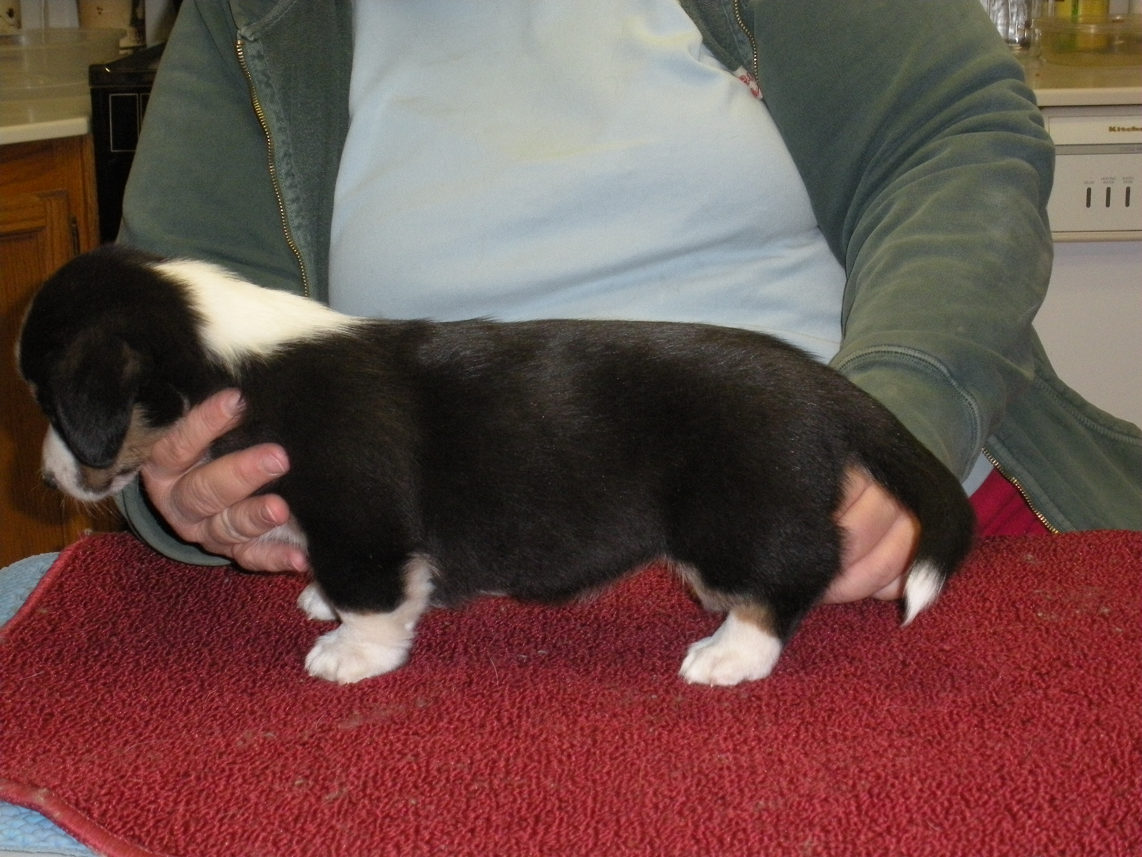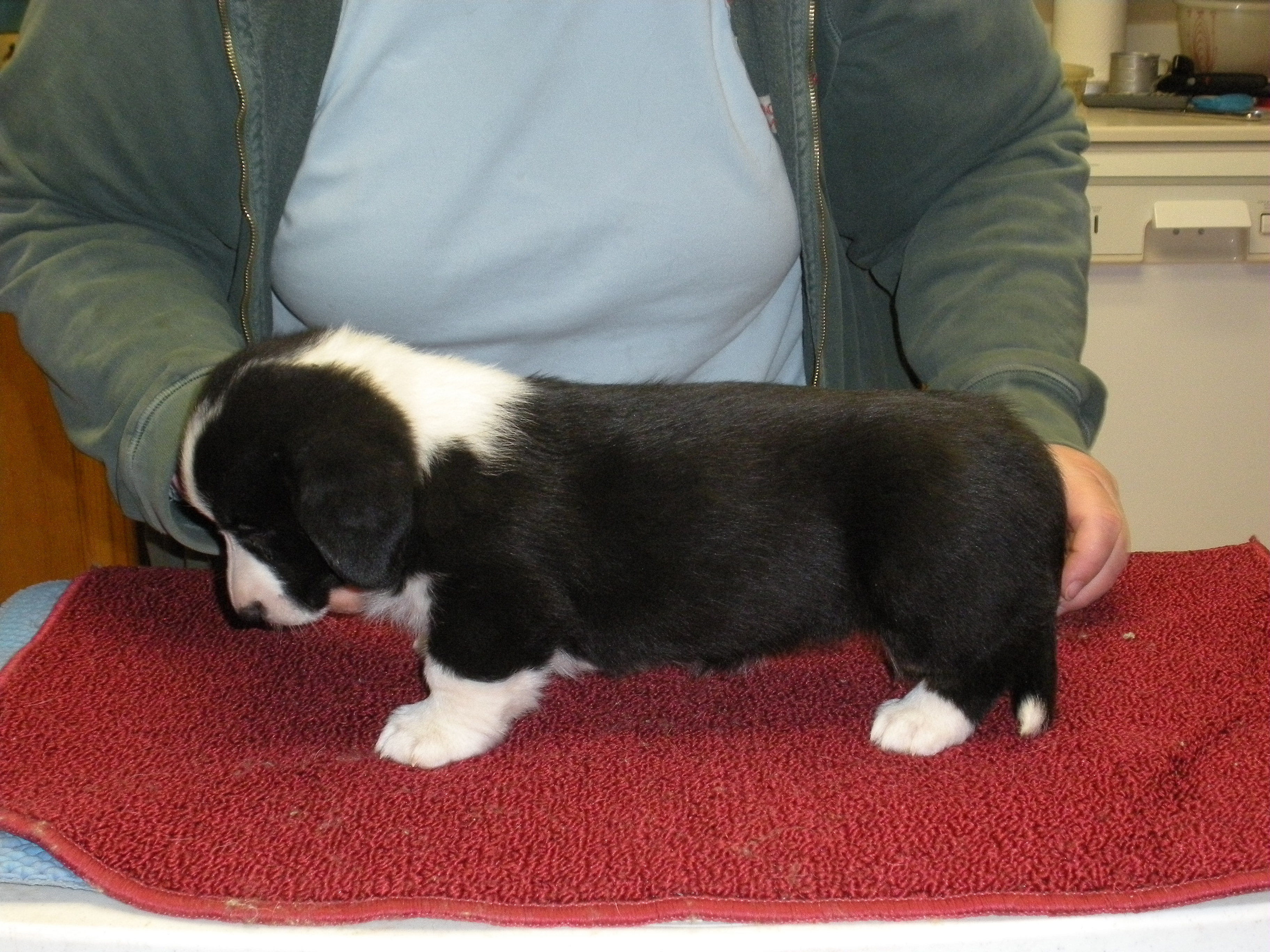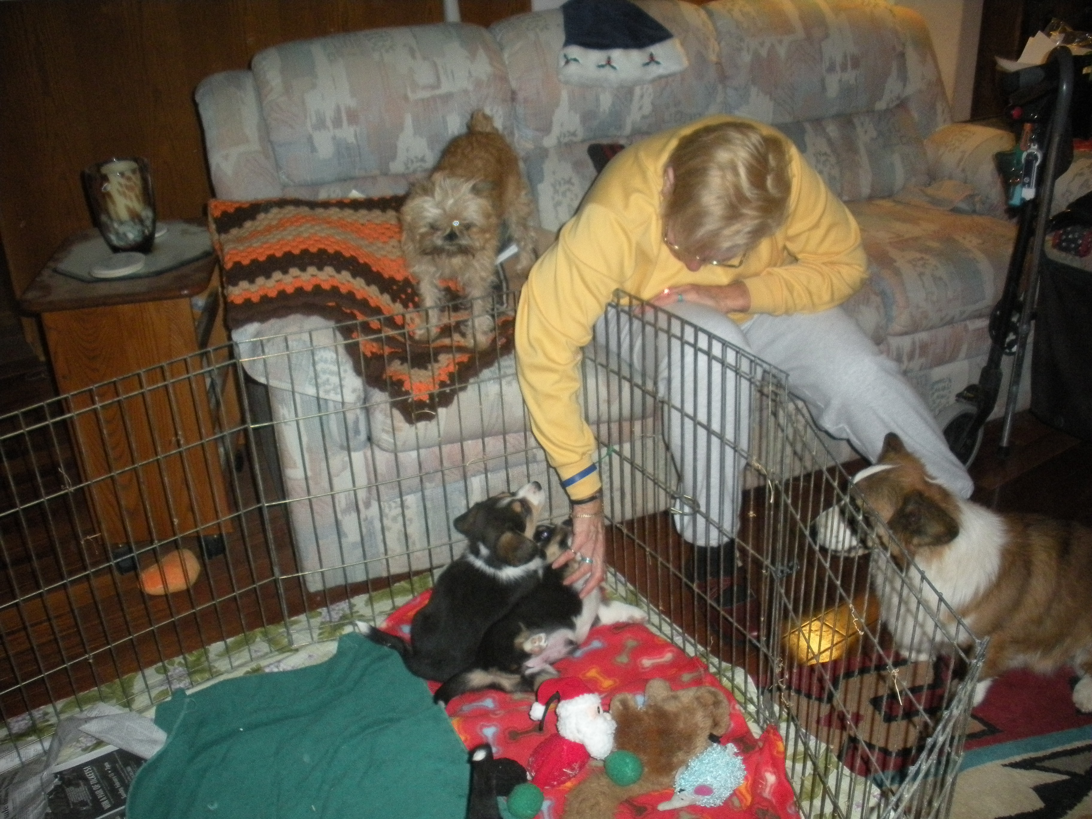 To Grandmothers house we went. The poopies had their 1st trip next door to Grandmas house. They hung out in the xpen while we watched some TV, the big dogs chewed hoofies and we had some dinner. They thought it was great fun. Didn’t seem to worried about the new place.