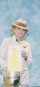 I spent a lot of time stewarding in my early days (still do when I have time) and after another disappointing day in the ring I was assigned to Judy’s ring. What a lovely lady, kind to the dogs and handlers, pleasant and friendly to her steward, had great shoes. Instead of doing her own thing during breaks she took the time to chat with me and ask about my breed. Aww, a sporting dog person, how had I done, etc. I told her how I had a lovely girl but I felt like as a novice I was getting in her way. She made a kind remark and had to go back to judging. When the lunch break came and the arena cleared out she looked around furtively and asked me if my girl was near by and if she was go and get her. She was and I did. Judy put me thru my paces in the ring, had me stack, gait, set up. When she was done she put her hand on my shoulder and told me that I was doing a fine job and to just keep doing what I was doing and Windy would be a Champion before I knew it. Then she went off for her much shorter lunch break.