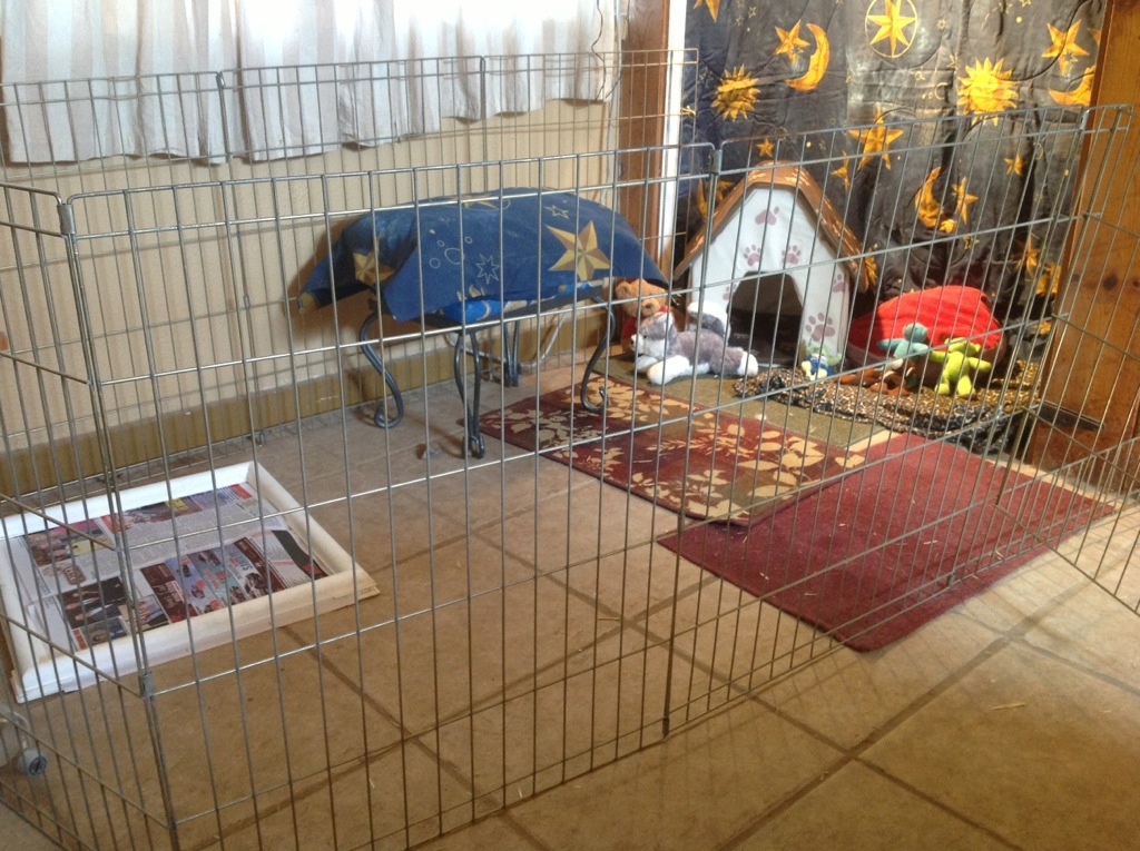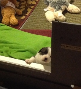The little man was on the verge of a jail break from the whelping box when I left for work on Friday and I was almost expecting him to be out when I returned.