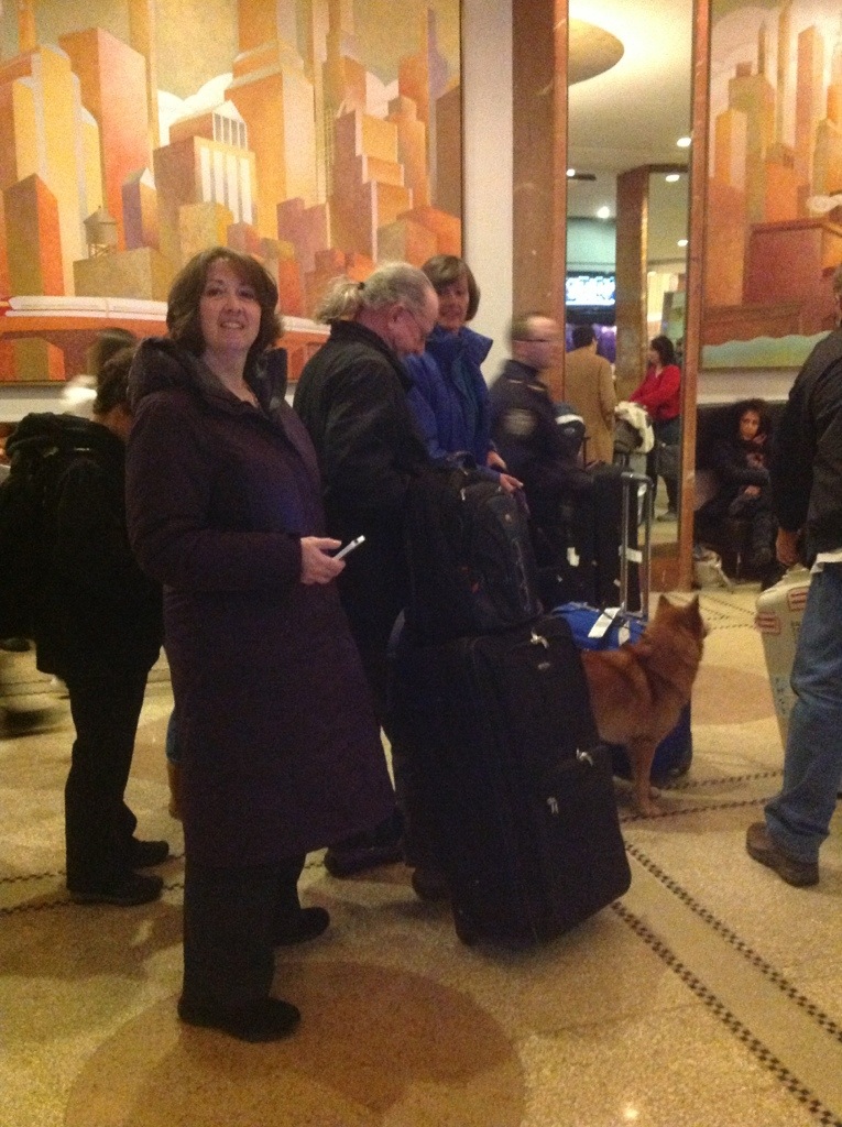 After a pretty quick trip from Newark, NJ into the City we arrived at the famous or infamous Hotel Penn. The lobby was filled with dogs, dog people and dog fans. And yes like Leslie always says I ran into someone I knew pretty quick, like on the curb as we were getting out of the Pet Taxi.