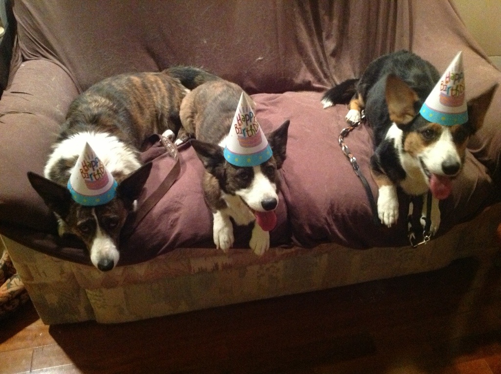 I cracked up when I saw this since the expression on Zippy’s face is much the same as his sister Bailey’s when I made her sit on the couch with her siblings for their birthday photo, isn’t there a family resemblance?