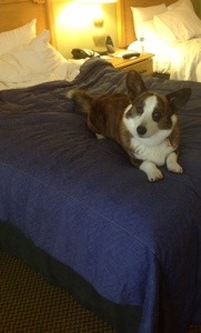 The hotel was great, I got a cool courtyard room which gave us a nice patio and access to the lovely grass under the orange blossoms. We got settled in and hooked up with our friends. Our friend Renee spent a couple of nights with us and of course the dogs loved having an extra “petter” in the room. Plus they conned her out of cookies.