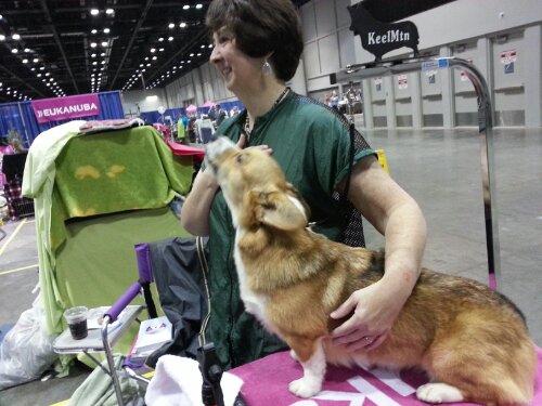 Bailey wasn’t thrilled with her “outfit” for the Meet the Breed booth. The CWCCA had a Christmas MTB booth and it was well attended and supported there always lots of Cardigans, Cardi folks and spectators learning about our wonderful breed.