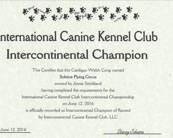 PJ, Bailey and I joined the Keelmtn team at the International Canine Kennel Club’s Georgia shows. We had 6 shows in one day and I can tell you we were all wore out! It was our first opportunity to play in the ICKC arena. It was fun but like I said we were worn out. Between the Solstice and Keelmtn we had 2 adult Cardis, 2 adult Pems and 3 Pem babies and we got lots of ribbons and both PJ and Bailey earned their Intercontinental and International Championships.