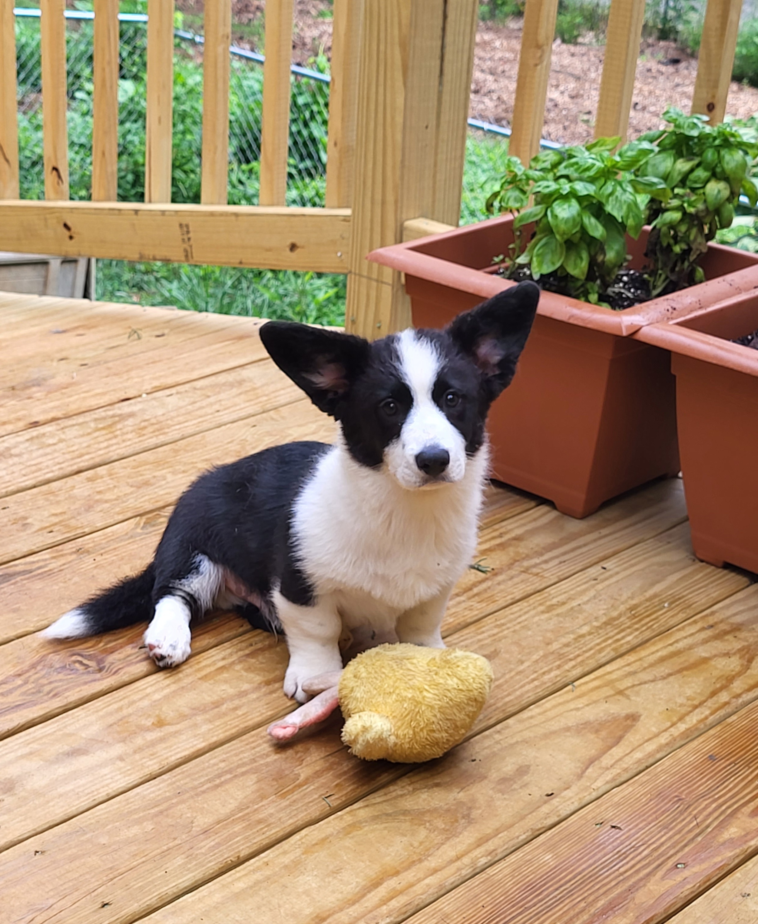 JeffJeff is thrilled to be a big brother. Bailey and Cali think he is ok and will play with him now and again. Banner says, stay away from me Kid! Little old lady Frosty just mostly ignores him.