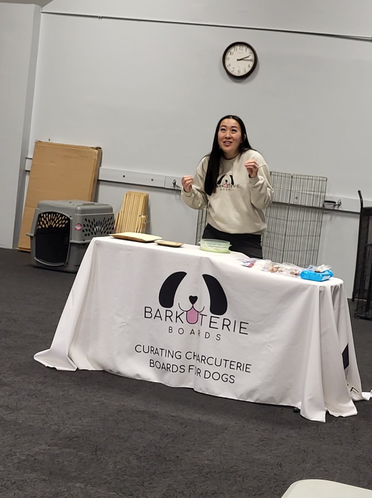 On Sunday afternoon I went to a fun doggy themed activity. Our friends at Canine Country Academy hosted a Barkuterie Board Workshop with Barkuterie Boards. We learned how make fun treat boards for our dogs. When my friend Kathy of Dwysan Designs LLC heard about the workshop she made sure I had a custom board of my own.