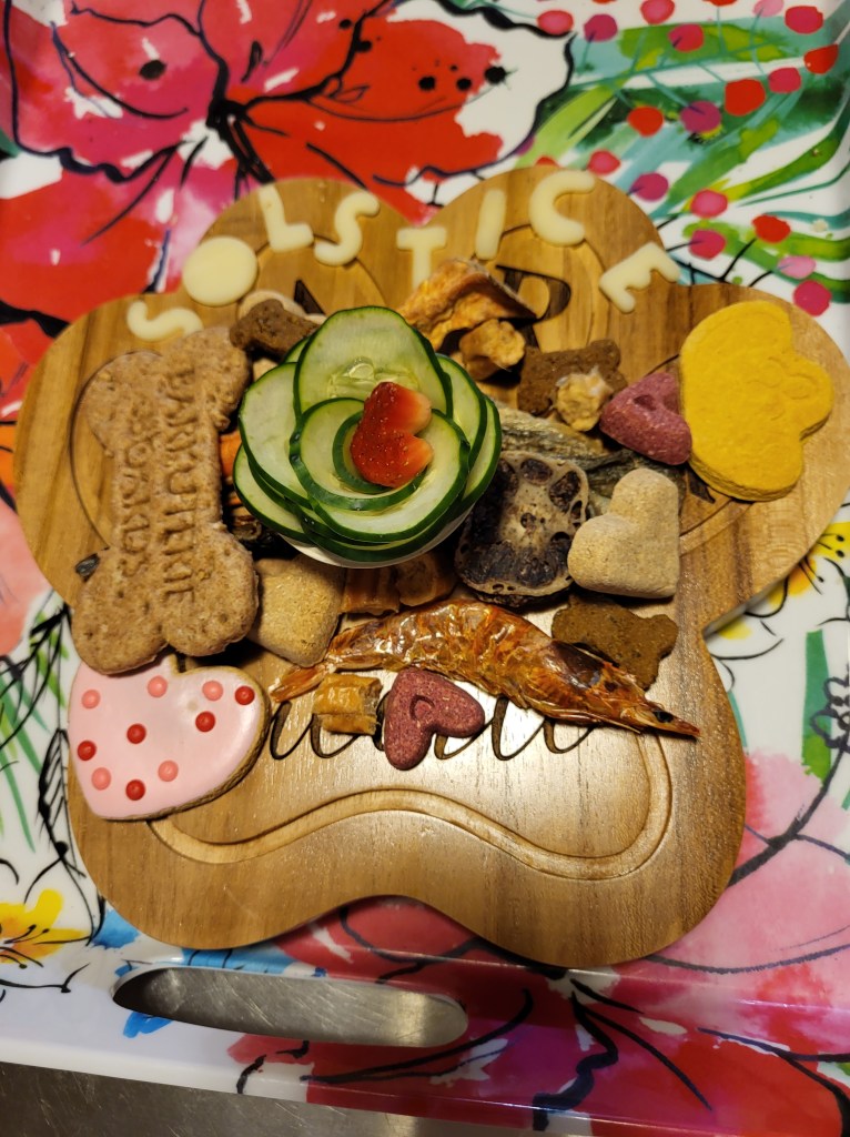 Fun snacks served artfully on trays have taken off as a fun and creative way to serve yummy snacks to your friends. It had morphed into something for everyone on a tray. Fruit, sweet and yes, dog treats.