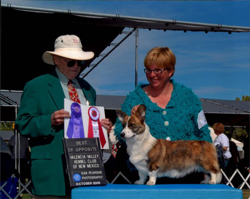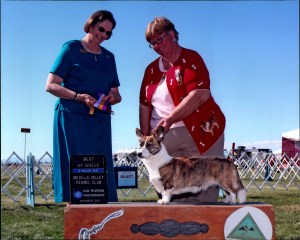 Frost, Gch. Rockie Top’s Flying Snow, RN, BN, FDC, RATI (GCh. Mariel’s Flying Spirit x CH MACH3 Peak’s Pippin’s The One CD RN HSAdsc HIAc MXB2 MJS2) bred by Polly Cole. Frost was named when I visited Polly and the litter in December, she was so cute with the frosting on her ears and when I left Denver there was a snow storm. Since the Solstice Cardis fly, she became Flying Snow.
