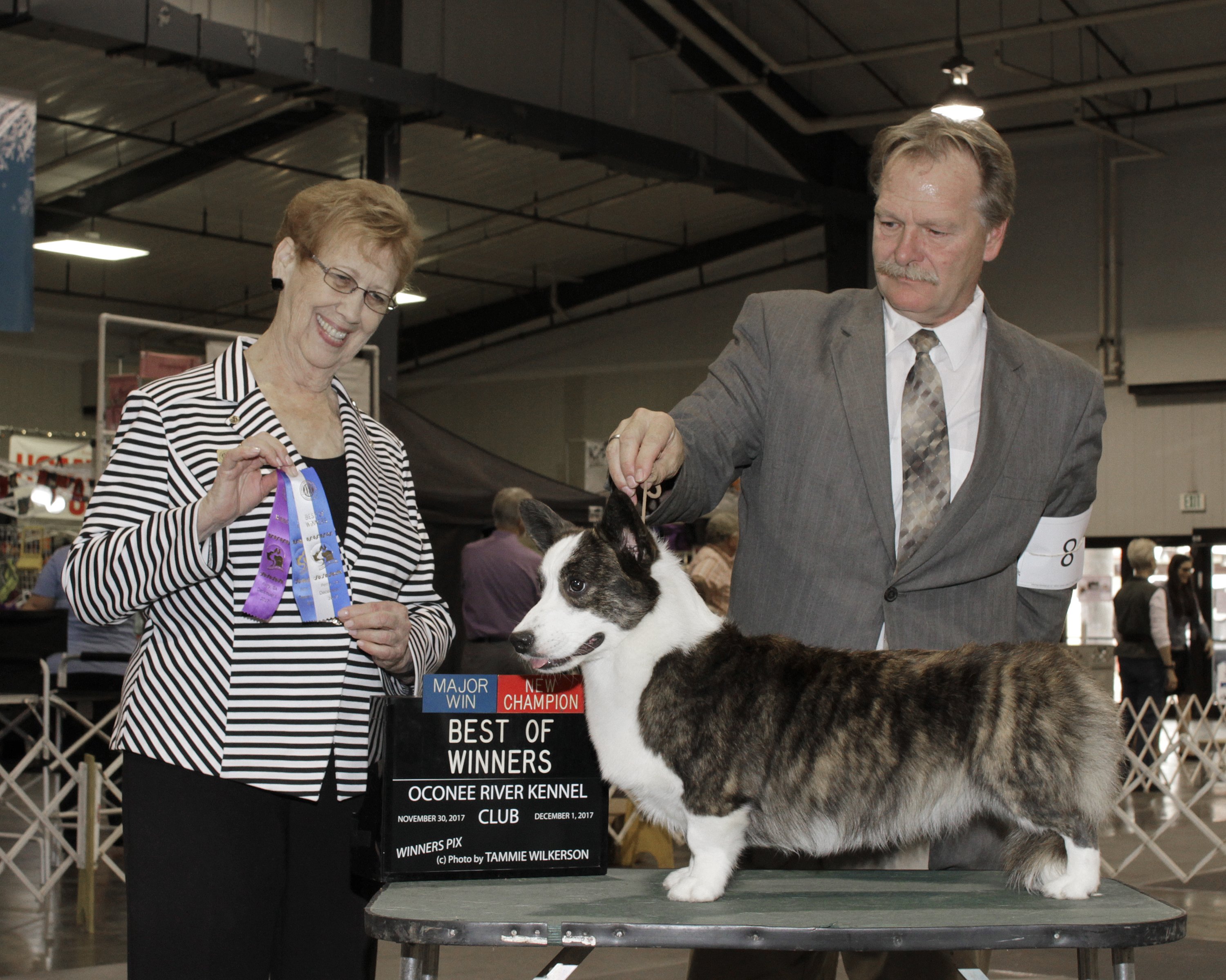 Cali finished her Championship with fairly limited showing. The fabulous Team McLo (Junior and Ashley) along with Ellie and myself guiding her to her wins. We are super proud of the Caliwags!